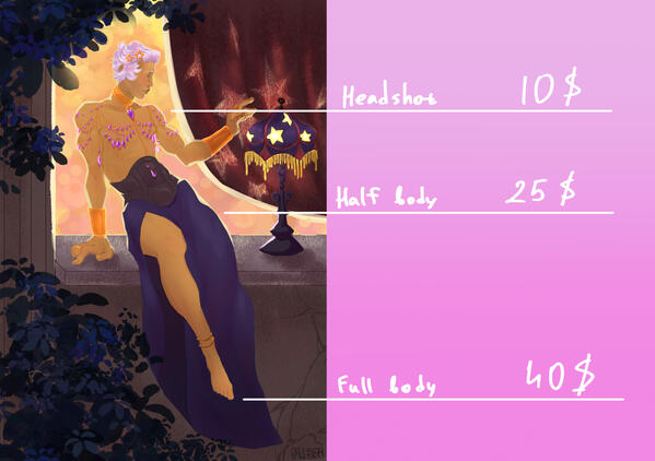 - Payment via Boosty and Hipolink only. - Payment after the confirmed sketch. 100% upfront. - No refunds (unless I can't finish the artwork). - I can decline a commission without stating the reason. If you already paid, I'll refund.